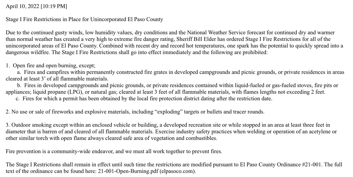 Stage Two Fire Restrictions Downgraded To Stage One For Unincorporated El Paso County El Paso County Sheriff